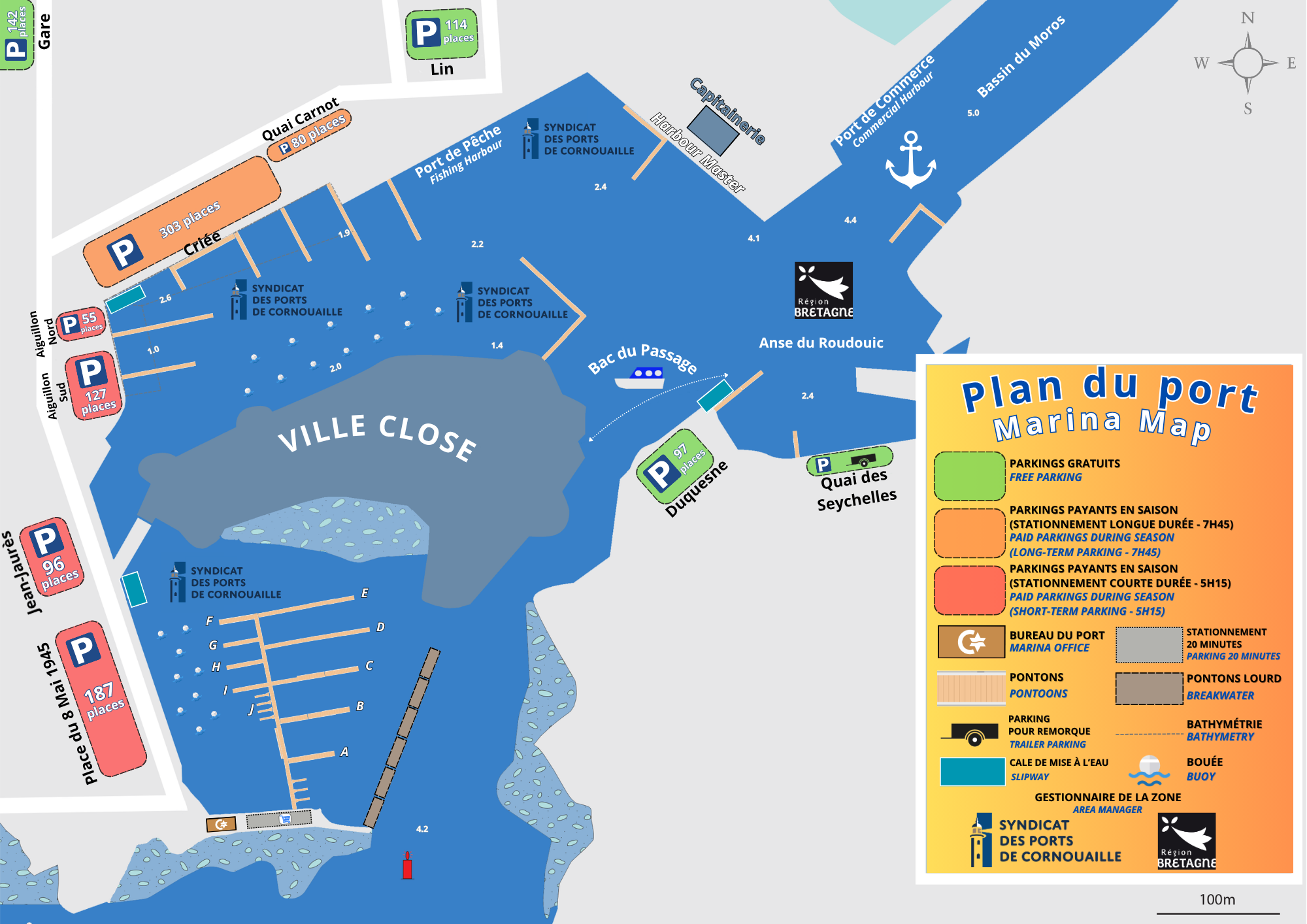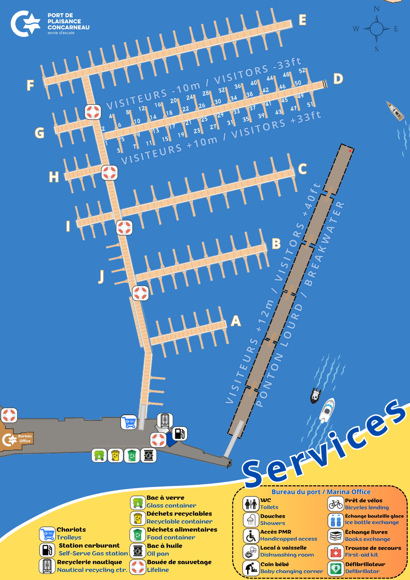 Idéalement situé au coeur de la ville, le port de plaisance de Concarneau vous offre un accès direct à de nombreux commerces d'alimentation et services divers.